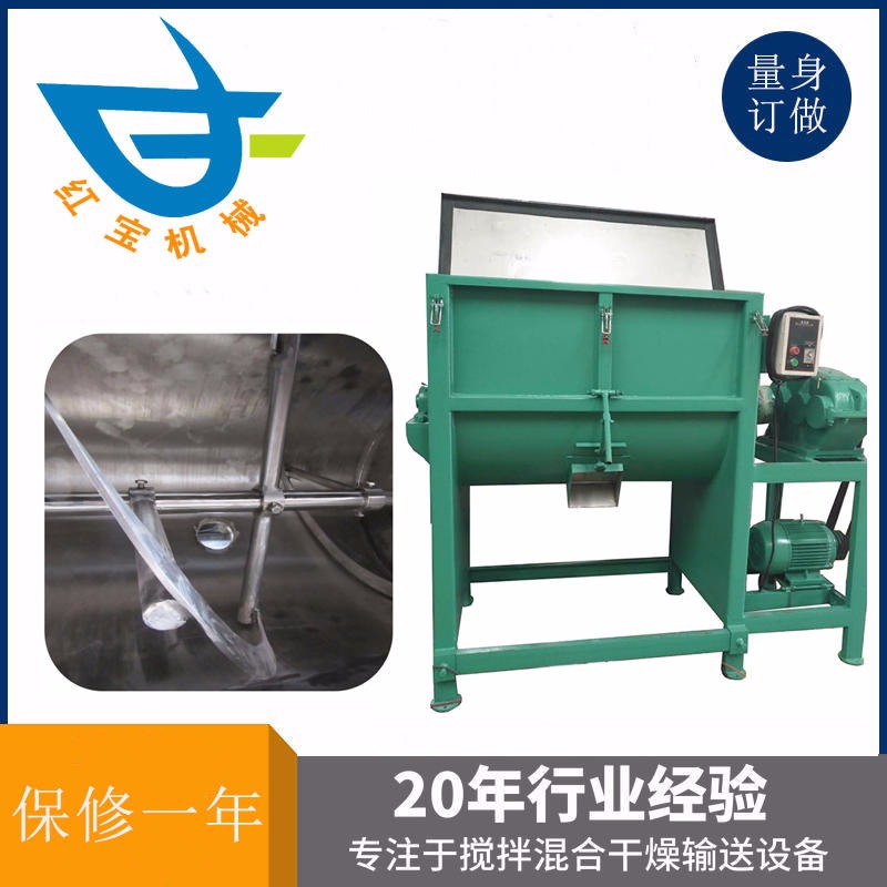 佛山紅寶機械研發的雙層螺帶食品臥式攪拌機吸取了國內外粉體混合機的先進技術經驗,是利用機械力和物料自身重力將PVC樹脂粉、重鈣粉、陶土、增塑劑、色母粉、潤滑劑等多種干粉物料均勻地混合在一起的多功能干粉混合機。高效混合,密封好,攪拌不留死角,混合均勻度不低于95%,配有螺旋上料機,上料速度快,操作方便,螺帶推動出料,放料干凈、殘留少,價格不足化工混合設備的1/2,塑料粉料混料機廣泛適用于PVC、礦粉、金屬粉、干粉砂漿、醫藥、飼料、食品添加劑等20-1400目粉體混合領域。