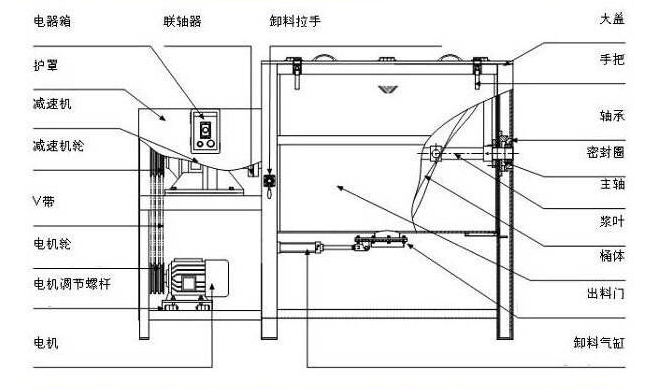 佛山除油粉不銹鋼臥式攪拌機結構圖: