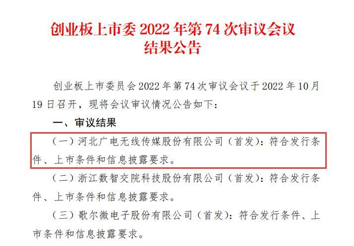 2022年10月19日,無線傳媒創業板首發成功過會。