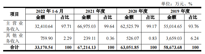在營業收入方面,2019年度至2022年1-6月,無線傳媒營業收入分別為58,673.68萬元、63,051.85萬元、67,214.13萬元及33,170.54萬元;主營業務收入分別為55,014.65萬元、62,525.79萬元、66,975.03萬元及32,410.64萬元,三年復合增長率為10.34%,占營業收入的比重分別為93.76%、99.17%、99.64%及97.71%。