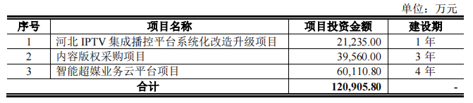 具體而言,本次募投項目中河北IPTV集成播控平臺系統化改造升級項目的實施將進一步強化智能化內容運營,并實現高效的內容智能審核;筑就播控系統邊界防護能力,加強網絡管理手段,保障網絡安全。內容版權采購項目的實施將有利于持續提升公司的內容競爭力,為公司業務長期發展帶來良性循環。智能超媒業務云平臺項目的實施將有利于培育平臺型經濟和打造區域新型主流媒體機構,提高企業創新能力與市場競爭力,培植新的業務增長點。