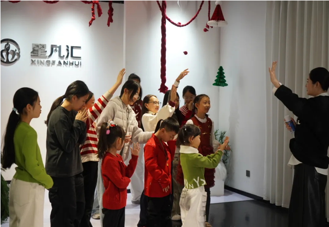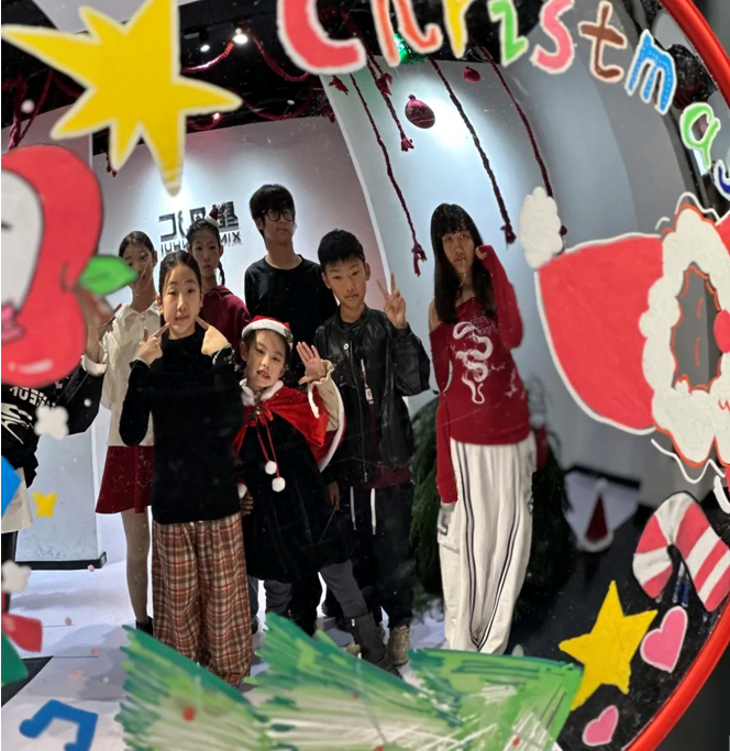 活動的最后,所有孩子齊聚在印有星凡匯logo的背景墻前,穿著圣誕色系的服裝,有的比出勝利的手勢,有的高高舉起雙手,還有的摟著身邊的小伙伴,在歡聲笑語中留下了溫馨的集體大合照。這張合照不僅記錄了孩子們的快樂瞬間,更凝聚了本次圣誕美育活動的美好回憶。
