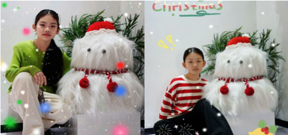 圣誕主題打卡環節正式開啟,多樣的拍攝場景讓孩子們的快樂值拉滿,每一個畫面都定格了獨屬于童年的圣誕美好: