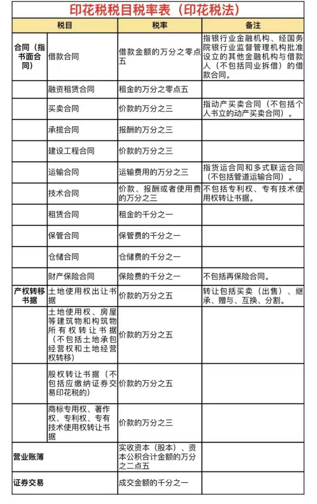 03其他印花稅稅率變化比較
