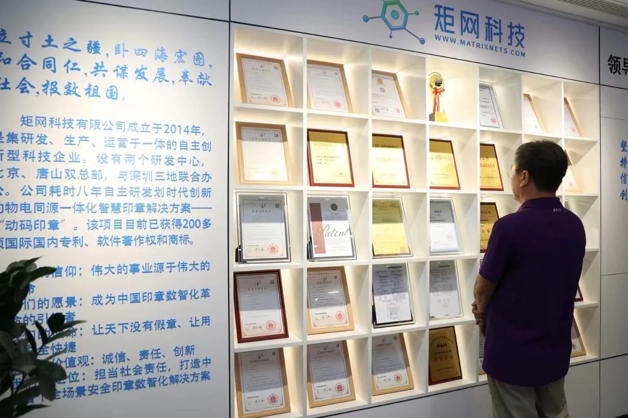 (桑海明在向校友介紹海明聯合能源集團子公司矩網科技核心產品——動碼印章)
