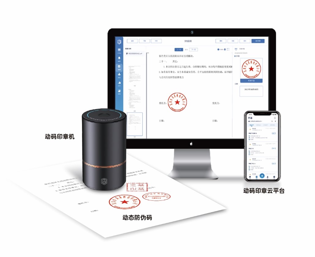 動(dòng)碼印章主要包括動(dòng)碼印章機(jī)、動(dòng)態(tài)防偽碼、動(dòng)碼印章云平臺(tái)等核心產(chǎn)品,圍繞印章管理、印跡防偽、文件簽署、認(rèn)證服務(wù)、存儲(chǔ)服務(wù)、查驗(yàn)溯源服務(wù)形成全方位的管理系統(tǒng)。其“物電同源”、“一機(jī)多章”、“印章防盜”、“大眾識(shí)別”、“印跡防偽”、“印跡溯源”、“異地用章”、“跨省通辦”等特點(diǎn),適用于軍隊(duì)、政府機(jī)關(guān)、外交、企事業(yè)單位、教育、銀行、醫(yī)院及社會(huì)各類組織、個(gè)人等各種應(yīng)用場(chǎng)景,有效防范外部假章,管控內(nèi)部用章風(fēng)險(xiǎn),助力政企組織實(shí)現(xiàn)數(shù)字化轉(zhuǎn)型,提高辦公效率以及印章的精細(xì)化管理水平。同時(shí),也能從根源上制止假章、假證、假公文事件,利于打擊違法犯罪活動(dòng)。